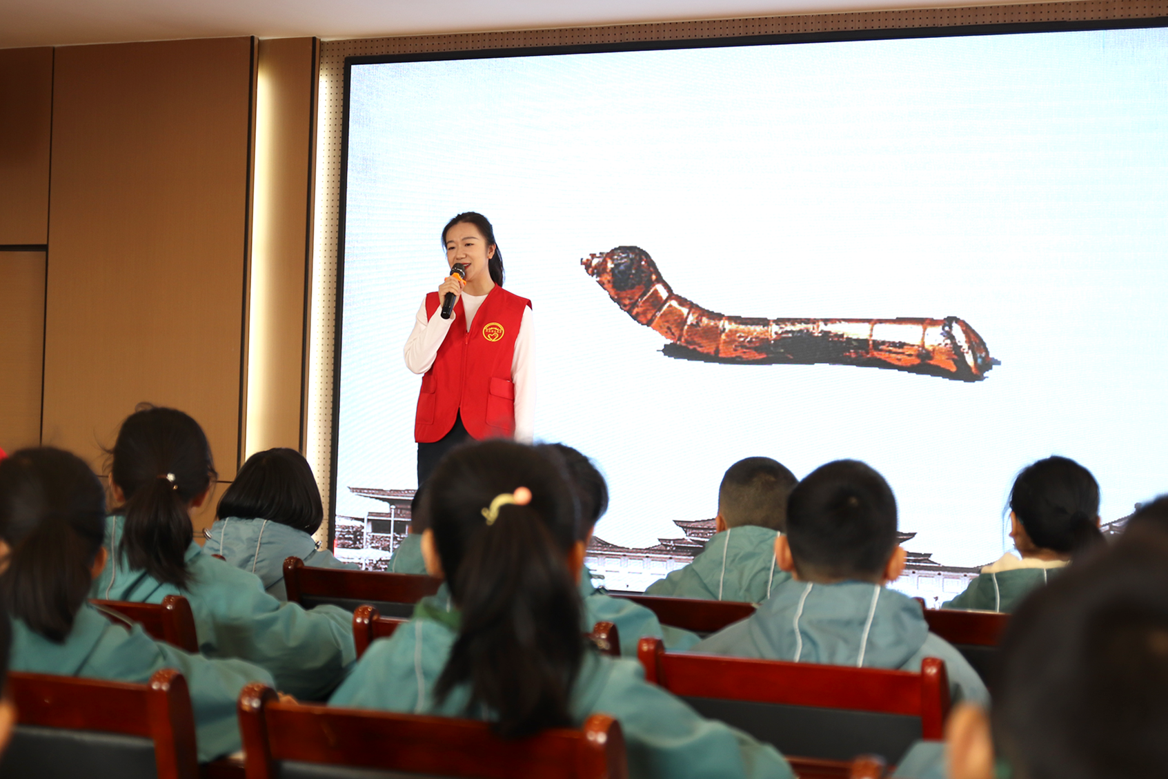 陕西历史博物馆志愿者带来“鎏金铜蚕”科普讲解。李玥涵 摄