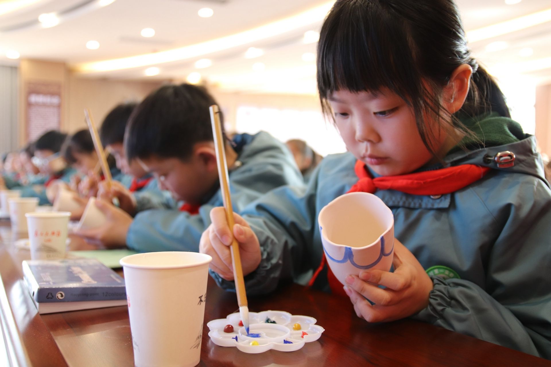 学生们动手进行陶杯填色。李玥涵 摄