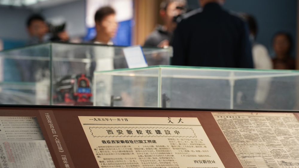 这是10月11日在交大西迁博物馆拍摄的1955年刊登的以“交大西安新校址开工建设”为主要内容的剪报。新华社记者 邵瑞 摄