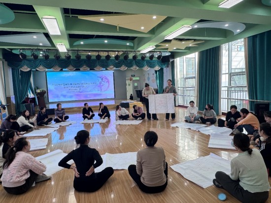 蔡娜老师以“身体即媒介、动作即语言”为核心理念,引导教师逐步进入身体探索与合作创作。学员们通过“镜面模仿”“协作留痕”等环节,体验身体感知与动作生成的过程。在音乐流动中,教师从“模仿者”转为“创造者”,重新发现身体的表达力量,强化“体验——反思——应用”的路径,帮助教师掌握创意动作教学方法,并通过“同伴观察——作品留痕——口头反思”的形成性评价,更清晰地理解教学行为与艺术生成的关系。学员们表示,通过学习和理解,让他们重新认识身体教学的教育价值,也为园所活动设计带来新启发。
