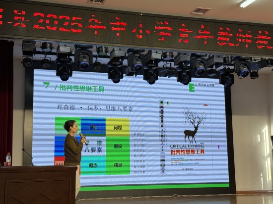由刘轩、郝婷婷开设的《新课标背景下批判性思维素养的落地与教学实践》,为教师提供了将批判性思维素养从理论落地到实践的可操作路径。课程以新课标要求为背景,系统阐释了批判性思维的内涵与核心框架,重点解析“目的、问题、观点、信息、概念、推理、假设、结论”八要素的逻辑结构及应用方式。课程通过真实学科案例、PBL项目式学习设计以及思维导图实践任务,展示了如何将批判性思维自然融入语文、数学、科学等课堂教学。与此同时,教师们还学习了批判性思维素养量规的使用方法,为学生思维能力的监测与反馈提供了科学依据。